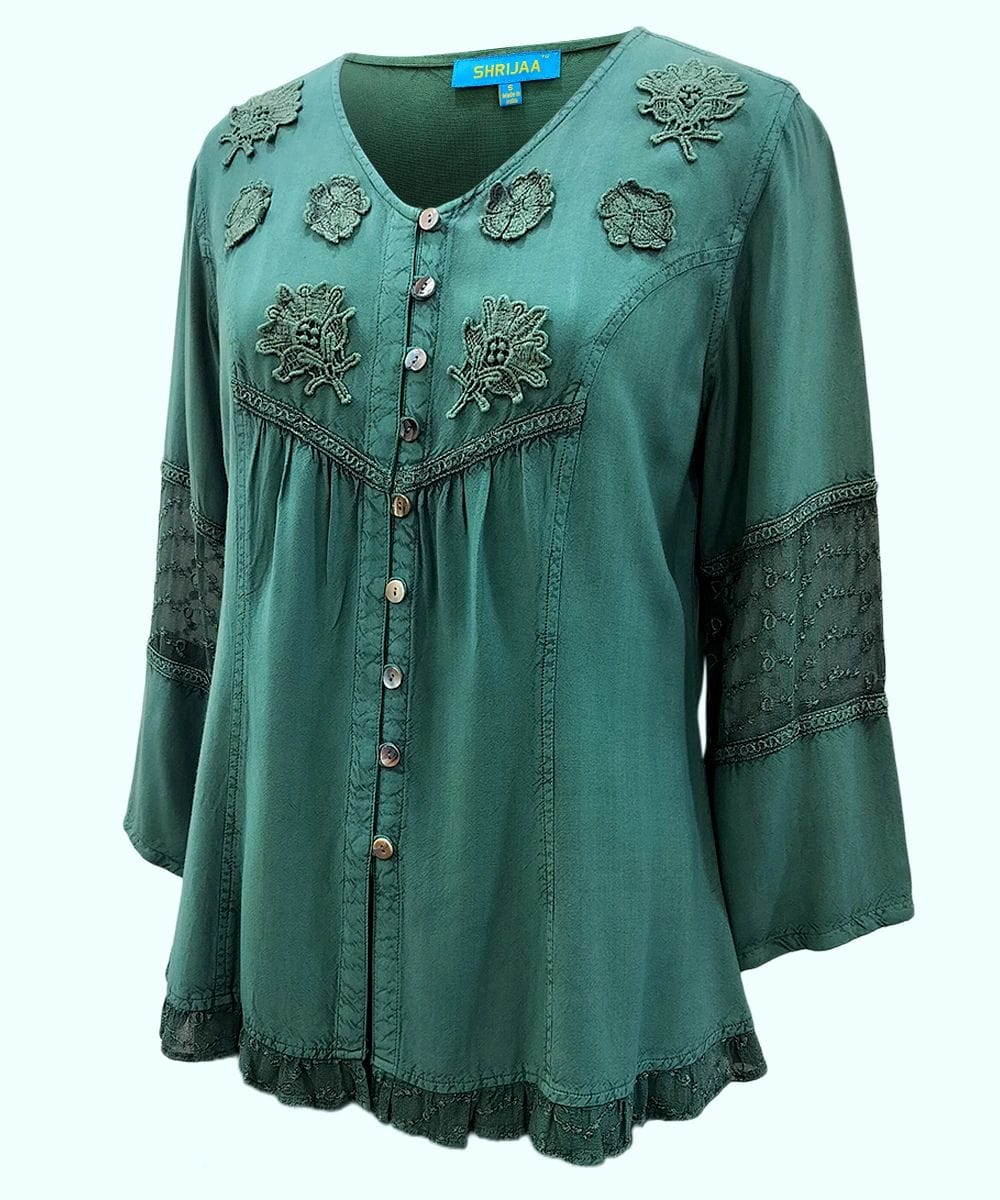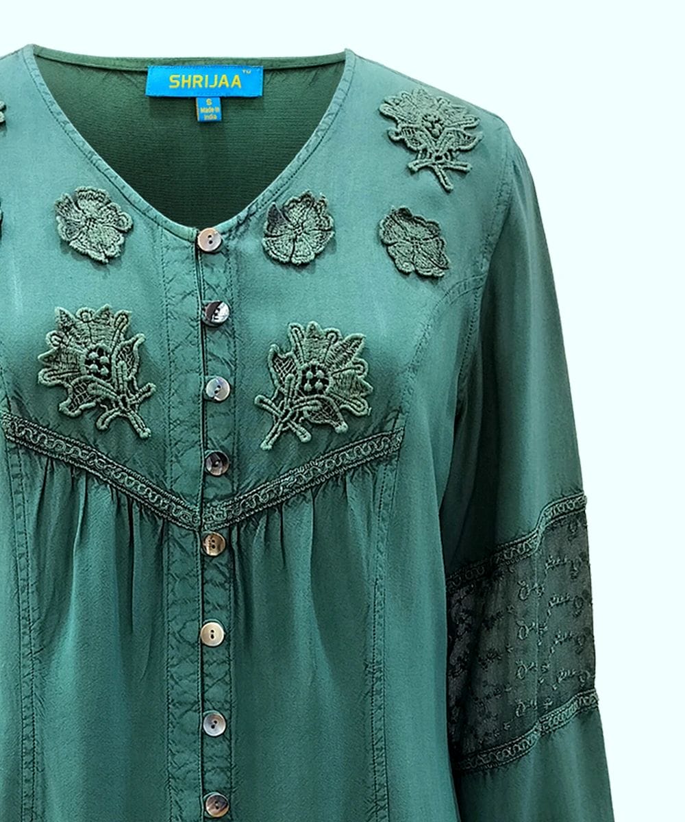 Our garments are ethically made by skilled artisans in India. This top is a versatile addition to any wardrobe, combining comfort with intricate detailing to create a piece that is both stylish and timeless.